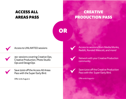 And there’s more! Co-Located Events covering Creative Production, Design Operations, Photo Studio Operations and Creative Operations.